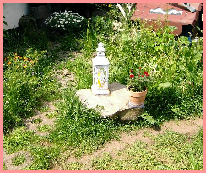 Links, neben der weißen Laterne, sieht man Esmeralda auf Futtersuche durch das Gehege marschieren.  |