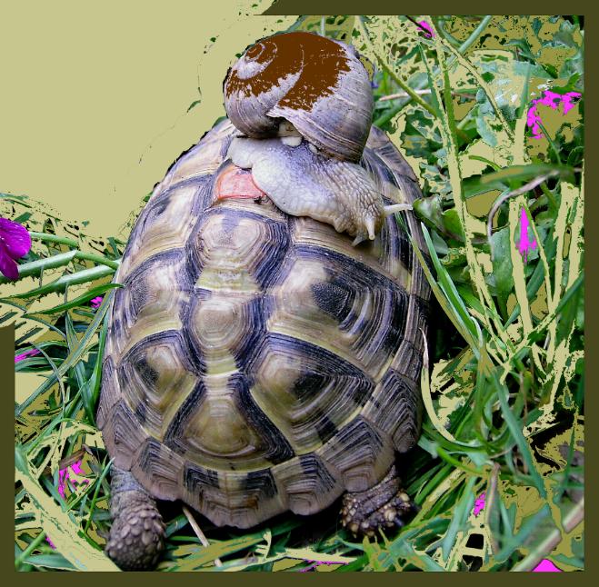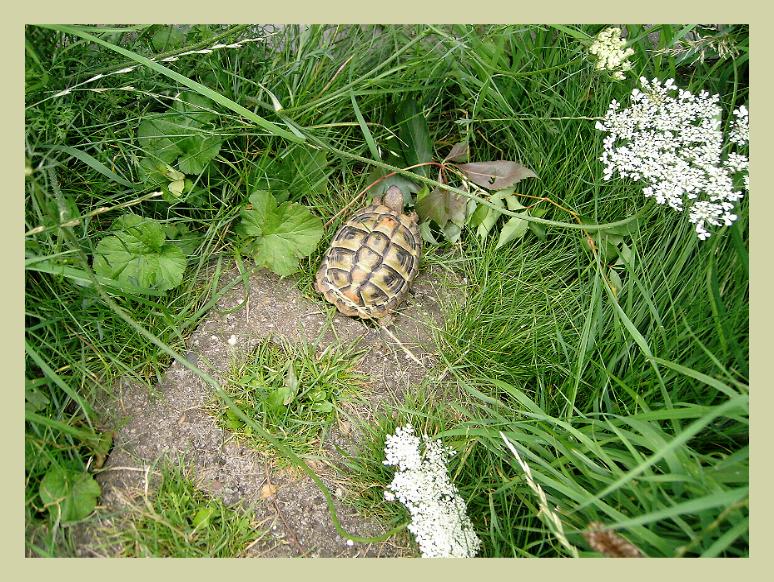 Frau “Quitschvergnügt” auf Wanderschaft durch das Schildkrötengehege.  |