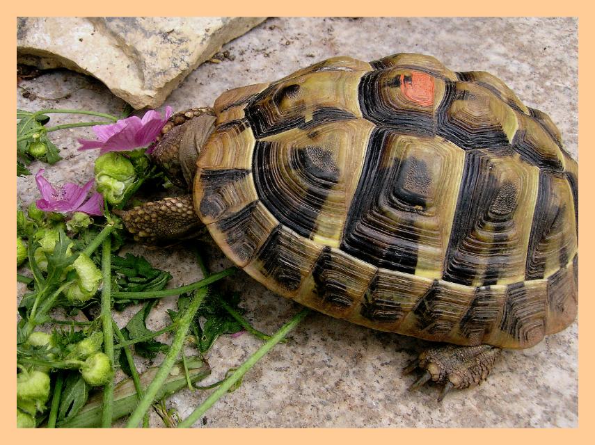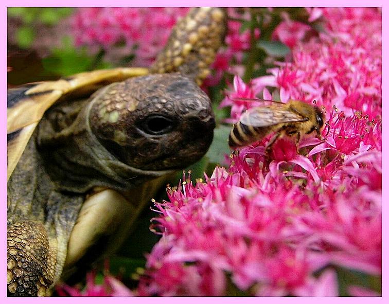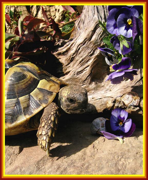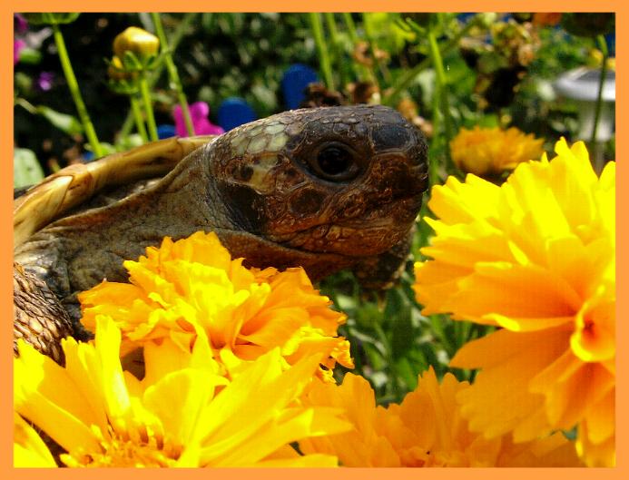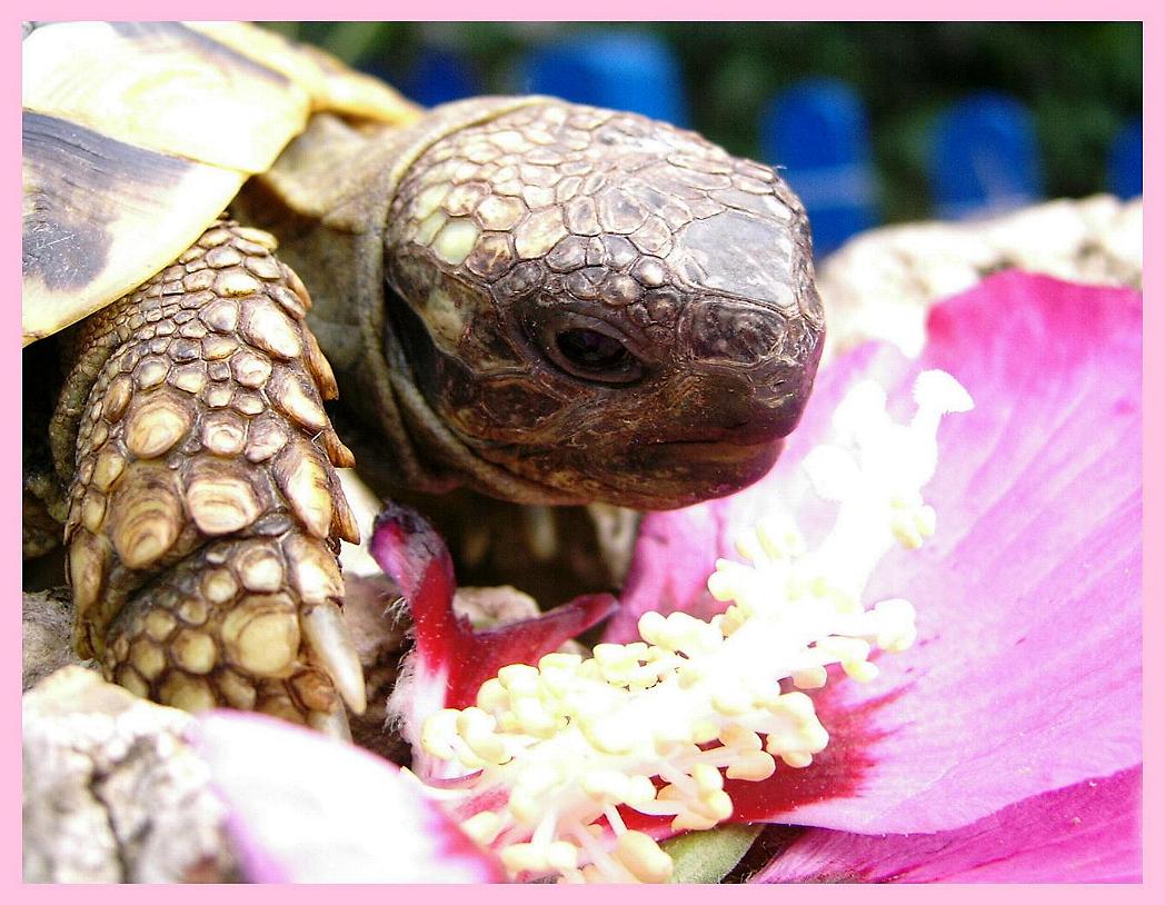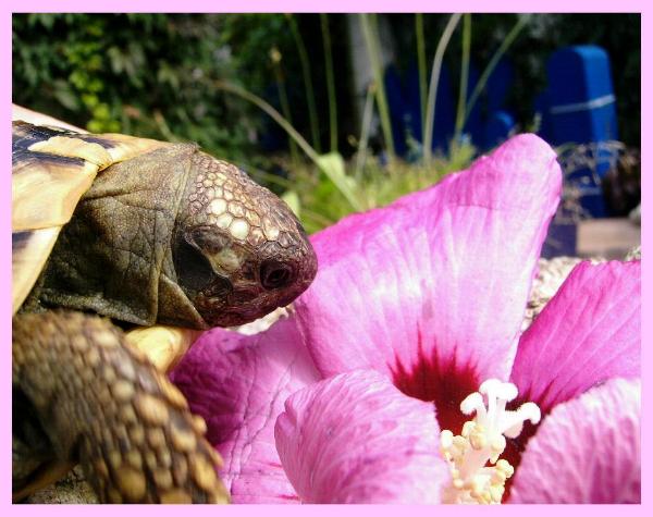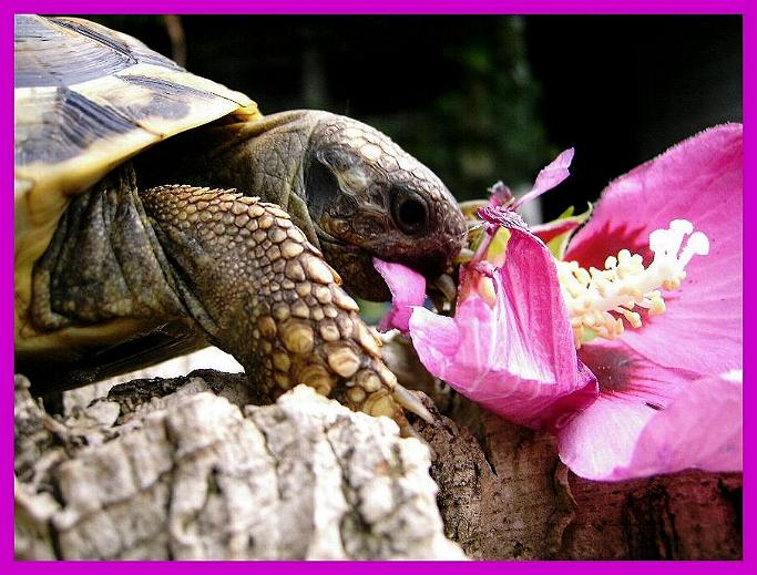 Esmeralda liebt, wie alle meine Landschildkröten, Blüten.  |