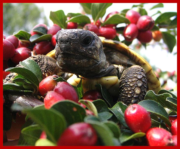 akzeptabel. Orka ist sozusagen unser Yin und Yang - unser kleiner gefühlsmäßiger Feng Shui unter den Schildkröten, bei dem und mit dem sich alle sehr wohl fühlen.  |
